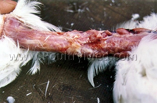 Salmonella inactivated SC neck injection. Intense reactions were observed in the neck region. Extensive yellow caseous necrosis.
