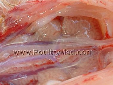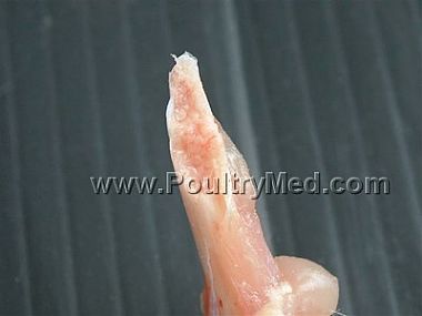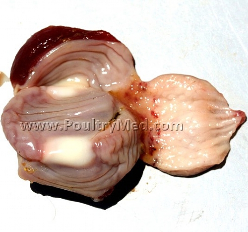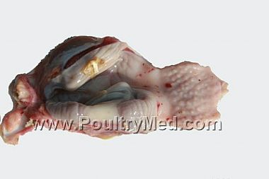 Hemorrhages in the mucosa of the distal part of the proventriculus - Pullet, 7 wks old