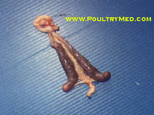 Eimeria tenella: caeca distended with blood.