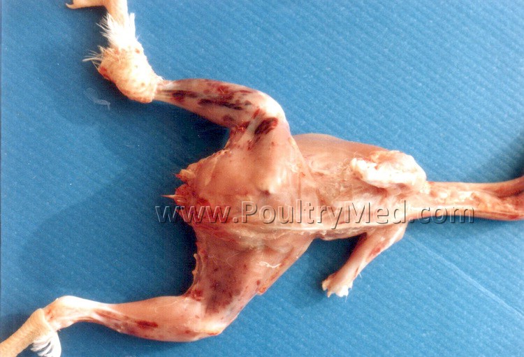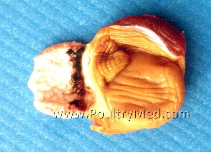 Haemorrhages at the proventriculus-gizzard junction.