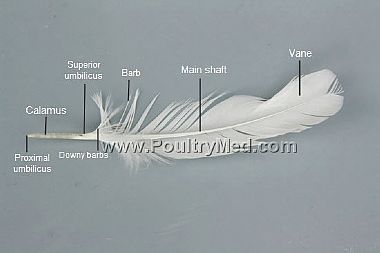 Downy barbs: Barbs that are not hooked together at the base of the feathers.