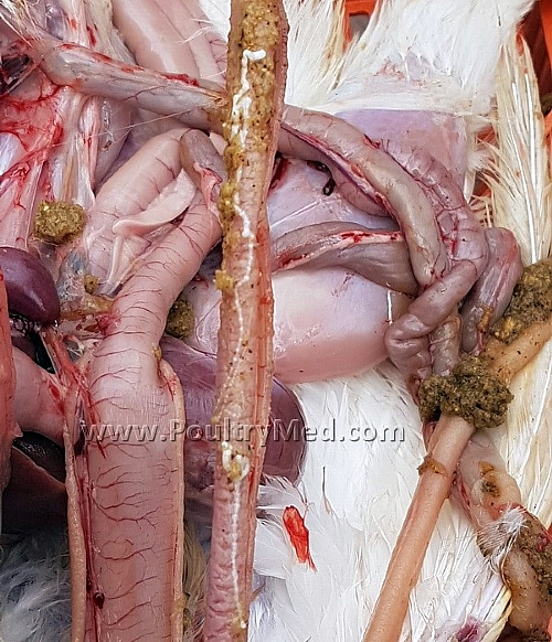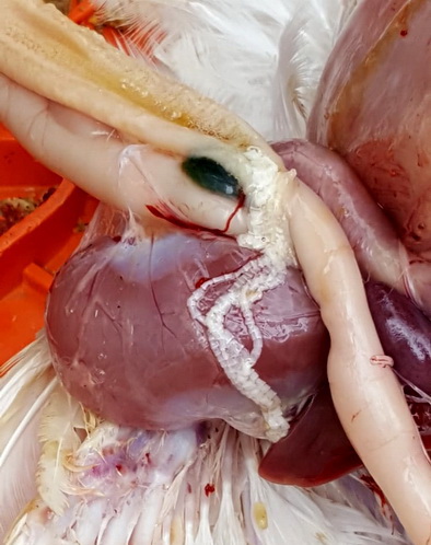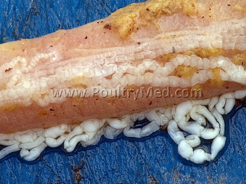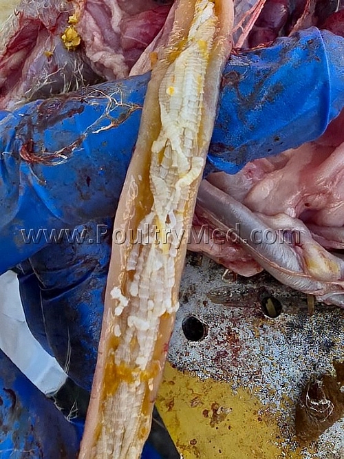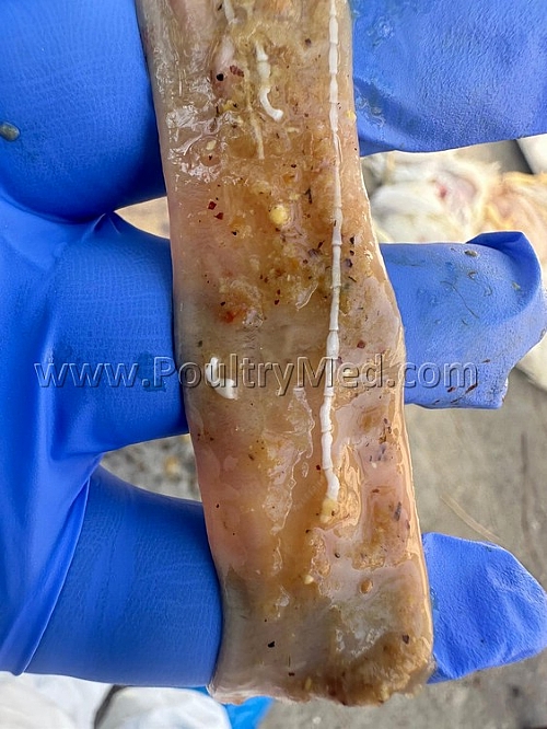 Tapeworms in 6 wks old turkeys (Image by Dr Gilad Ayali)