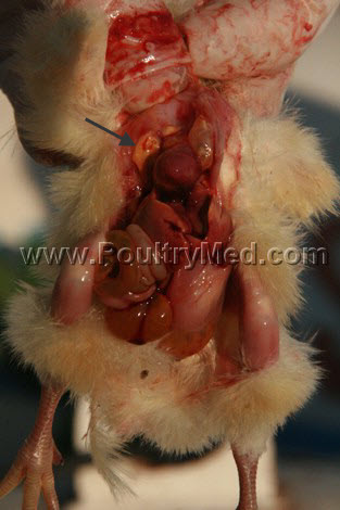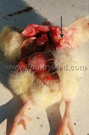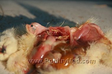 Airsacculitis in a chick, caused by Mycoplasma gallisepticum