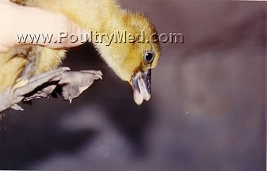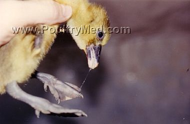 Hypersalivation in 7 day old gosling due to diazinon poisoning.