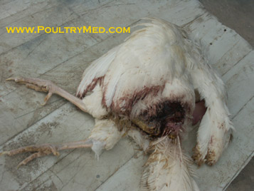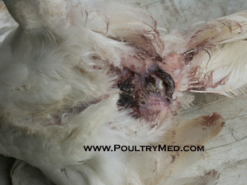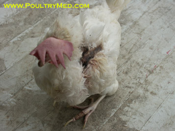 Skin damage due to cannibalism in layers.
