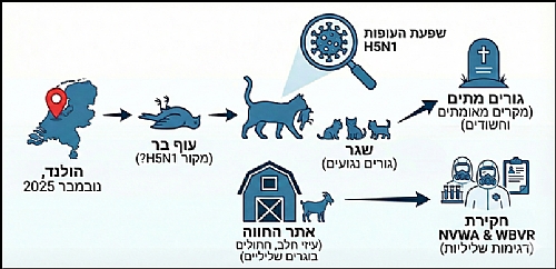 מקרה מאומת ראשון של שפעת עופות H5N1 התגלה בחתולים בהולנד
