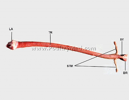BR= Primary bronchus; LA=Larynx; TR= Trachea; STM= Sternotracheal muscle; SY= Syrinx.