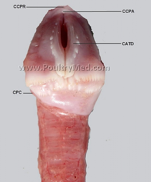 CATD= Cartilago arytenoidea, trabecula dorsalis; CCPA= Cartilago cricoidea, pars caudalis; CCPR= Cartilago cricoidea, pars cranialis; CPC= Cartilago procricoidea.
