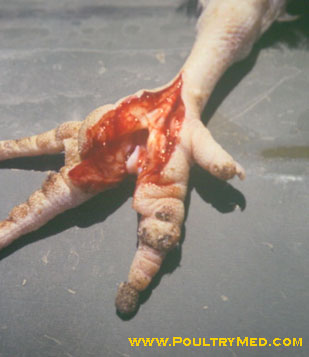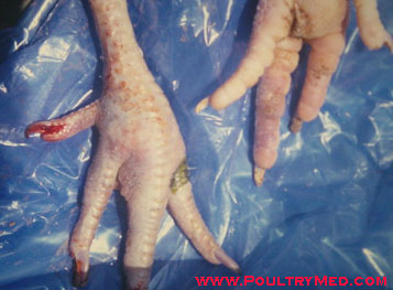 Haemorrhages in the wattles.