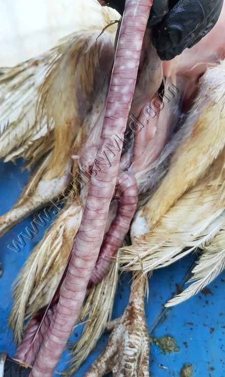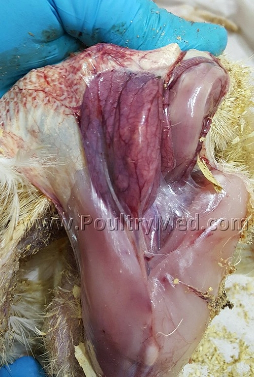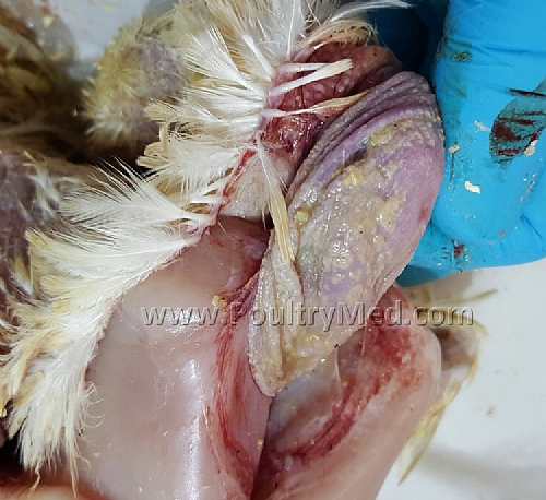 5 weeks old turkey. Candidiosis of the crop. Image by Dr. Gilad Ayali