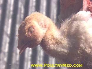 Swelling of the infraorbital sinuses in a 2 weeks old poult