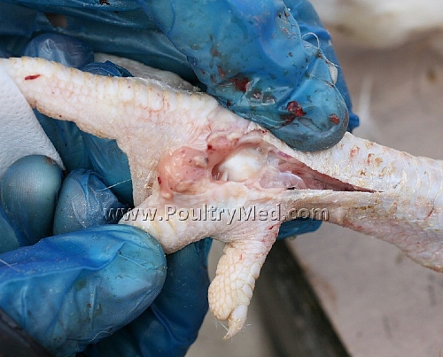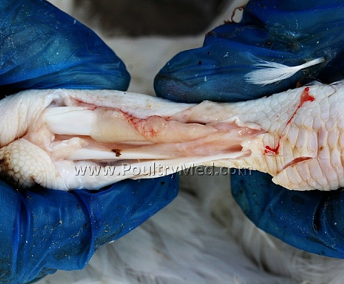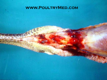 Rupture of the gastrocnemius is accompanied by haemorrhage which in turn causes green discolouration of the skin at the joint.