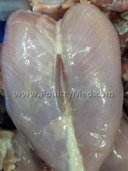 Breast fillets displaying severe white striping.