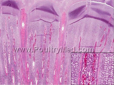 Tissue from a young turkey (X40; inserts X200; Von Kossa stain).