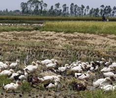 "Mapping H5N1 highly pathogenic avian influenza risk in Southeast Asia" was recently published in the latest issue of the Proceedings of the National Academy of Sciences of the United States. In the report researchers affiliated with the United Nations Food and Agriculture Organization (FAO) collected data from three waves of hundreds of avian flu outbreaks in Vietnam and Thailand in 2004 and 2005, and then used statistical modeling to determine what factors most contributed to infection and spread of the disease. They found that human population concentration and high rice production were both strong risk factors for H5N1 outbreaks, as were numbers of both free-ranging and farm ducks. Ducks feed mainly on leftover rice grains in harvested paddy fields, so free-ranging ducks in both countries move to many different sites in line with rice harvest patterns. In Thailand, for example, the proportion of young ducks in flocks was found to peak in September-October; these rapidly growing young ducks can therefore benefit from the peak of the rice harvest in November-December. Meat ducks are slaughtered around the Chinese New Year, a time when the volume of sales-related duck movement rises considerably.