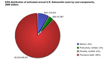 The Economic Research Service (ERS) estimates that the annual economic cost of salmonellosis—the illness caused by the Salmonella bacterium—is $2,649,413,401 (2009 dollars). ERS average cost per case, 2009 - is $1,896.