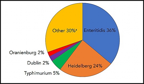 A new study shows that of the 96,082 Salmonella cases reported to the National Enteric Surveillance Program (NESP) in Canada during the 14-year study period,4.4% were bacteremic. Patients with bacteremia are more likely to experience severe outcomes, including hospitalization and death, unless treated promptly with antibiotics. 19 nontyphoidal Salmonella (NTS) serovars were identified as having higher rates of bacteremia. Of the 570 NTS serovars reported to the NESP from 2006 to2019, 136 were associated with bacteremia. Enteritidis was the most frequently associated with bacteremia, with over 1,000 reports. With Heidelberg, these two serovars accounted for 60% of the blood reports. Typhimurium, Dublin and Oranienburg were, respectively, the third, fourth and fifth most frequently serovars reported in blood. Heidelberg, Oranienburg, Schwarzengrund, Virchow, Panama and Poona among the top 25 most commonly reported serovars in Canada during the study period.
